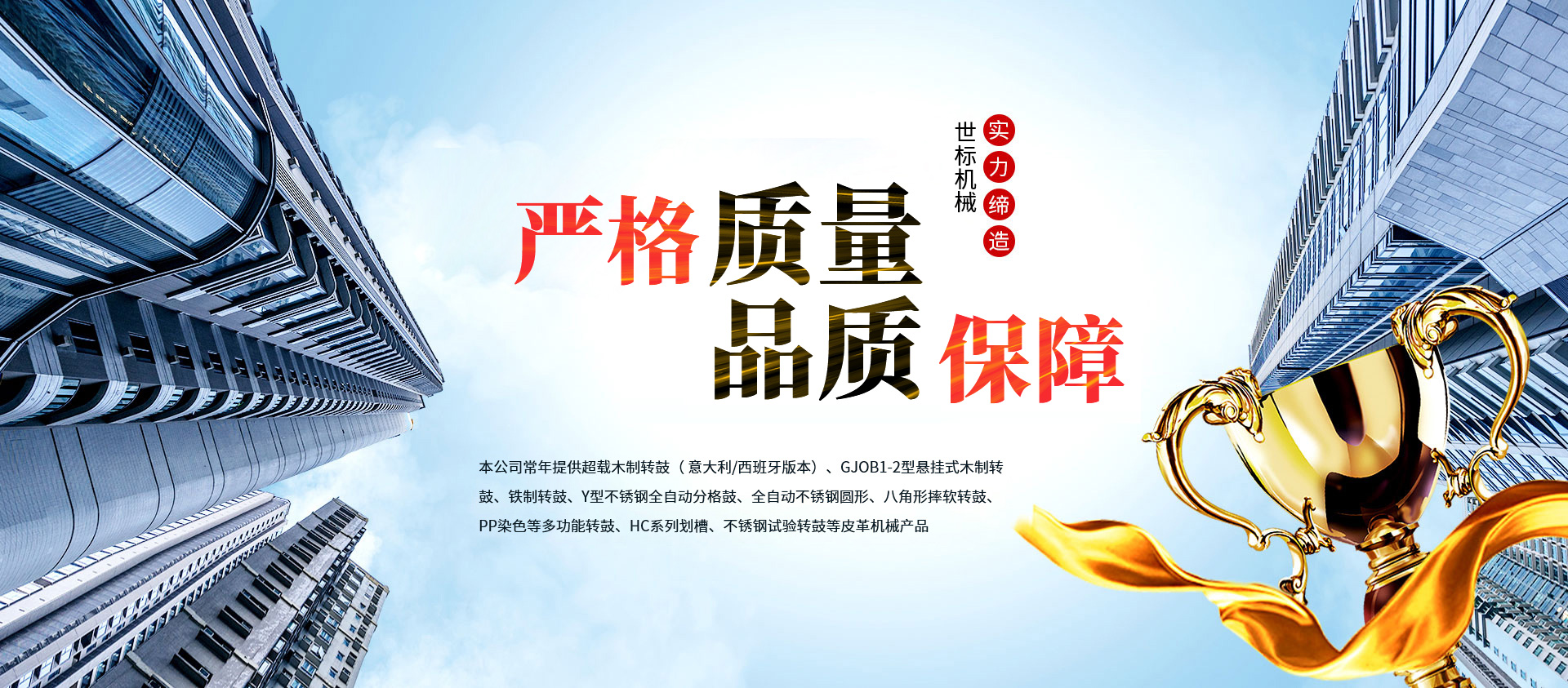 本公司常年提供超載木制轉鼓( 意大利/西班牙版本)、GJOB1-2型懸掛式木制轉鼓、鐵制轉鼓、Y型不銹鋼全自動分格鼓、全自動不銹鋼圓形、八角形摔軟轉鼓、PP染色等多功能轉鼓、HC系列劃槽、不銹鋼試驗轉鼓等皮革機械產品,產品暢銷浙江、山東、廣東、福建、河南、河北、四川、新疆、遼寧等地,且遠銷非洲、東南亞、南美洲、中美洲等多國,深受各大制革廠家的青睞。產品相繼通過省級鑒定和全國皮革、制鞋機械質量檢測監(jiān)督中心的抽樣合格檢驗,在2010中國高新技術、新產品博覽會上一舉榮登銀獎寶座,其配件鋼芯泥塑鼓樁獲 專利權。本公司并向客戶提供皮革機械特殊規(guī)格設計、設備維修調試、技術改革等各項便捷服務,具有健全的檢測體系和可靠的售后服務。
